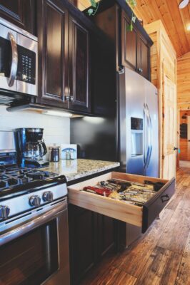 From its vaulted living room ceilings and 6-foot-tall windows, to the sleek, high-end, fully stocked kitchen; guests to The Bookers Luxury Cabin often find it tough to return home after their stay.