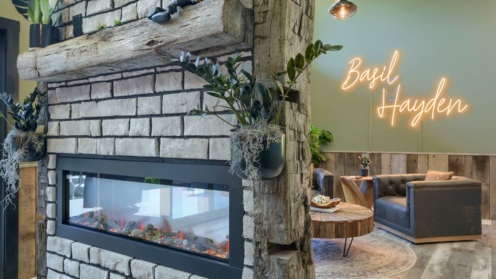 Inside, the atmosphere of The Bookers luxury cabin is cozy and inviting with its plump, premium leather sofa and pair of matching, comfortable chairs all situated around the charming stone fireplace and hearth.