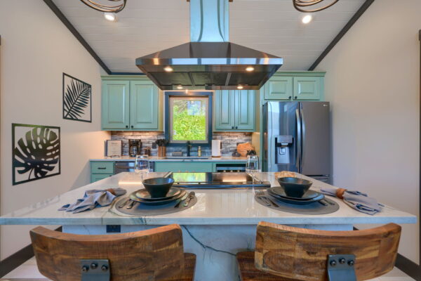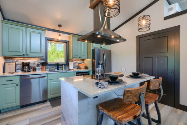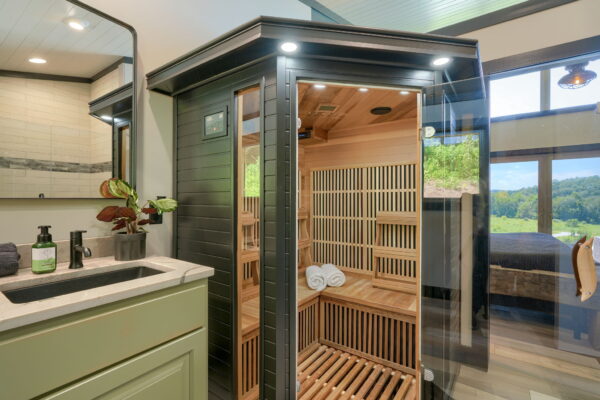 Designed for up to two guests, these extraordinary retreats offer a gourmet kitchen for culinary enthusiasts. The cozy living area, complemented by an electric fireplace, provides a perfect atmosphere for relaxation. Immerse yourself in the healing benefits of our state-of-the-art infrared sauna, or indulge in a spa-like experience in our custom showers.