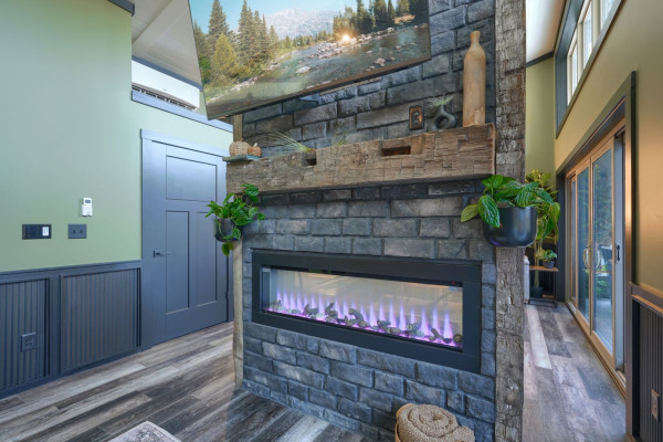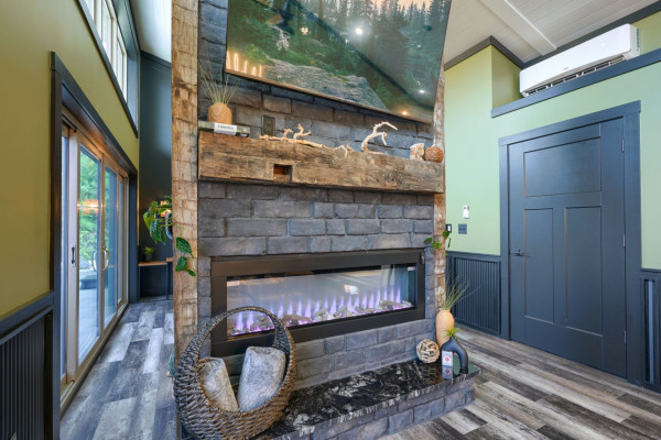 The cozy living area, complemented by an electric fireplace, provides a perfect atmosphere for relaxation. Immerse yourself in the healing benefits of our state-of-the-art infrared sauna, or indulge in a spa-like experience in our custom showers. Each cabin is adorned with unique furnishings that blend modern elegance with natural beauty.