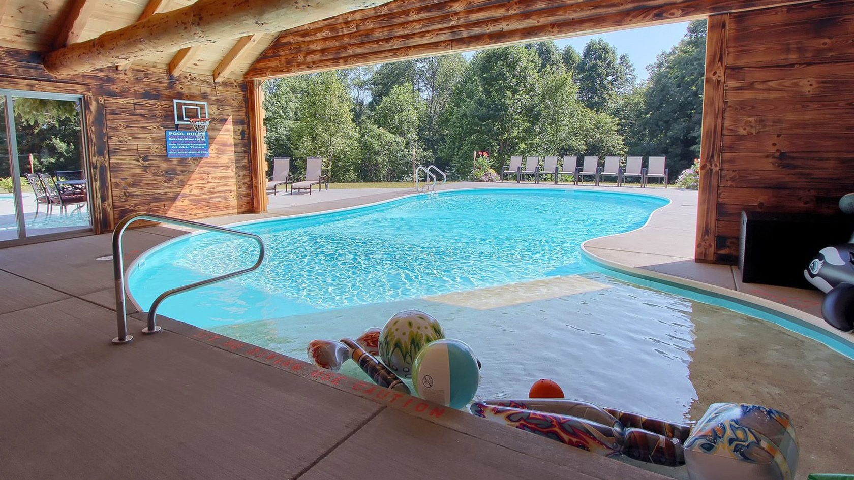 Surrounded by manicured lawns and sweeping hills, the pool gaming area is sure to keep even the most active guests busy, with basketball and volleyball ,pool games, tether ball and lawn games. Beyond, there’s over 5 miles of groomed trails to explore, creeks to be discovered and wildlife to spot. Head out with the entire party to take in all the magnificent scenery Hocking Hills has to offer