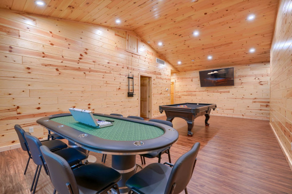 Speaking of games, we have thought of that too. Practice your technique or teach the grandchildren a thing or two with the lodge’s games. As well as housing games the whole family can enjoy, it features an incredible indoor-outdoor swimming pool. The 20’ x 40’ zero-entry pool is not only heated year-round, it’s shielded from the elements with a high glass wall. When you most desire, simply swim under a glass wall to get outside. Just one of the many breath-taking features of The Ridgemont lodge.
